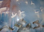 Elle applique aussi al technique de l’aquarelle a la peinture sur soie.