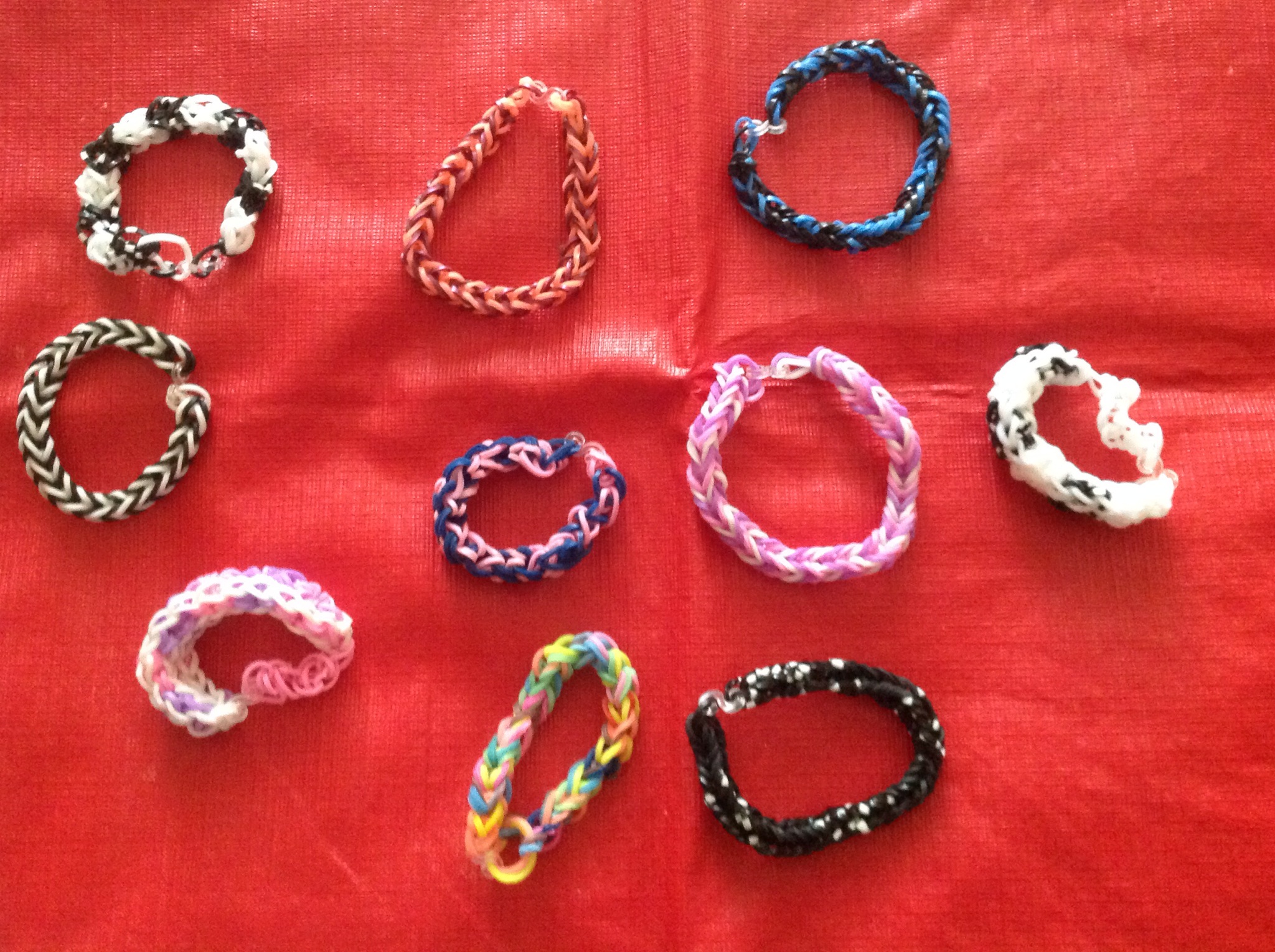 Cet été, comme tout le monde, j’ai fabriqué des looms. Aidée de ma petite-fille, j’ai mélangé les couleurs pour faire ces petites choses amusantes à porter au poignet. Deux doigts suffisent pour fabriquer une chaîne simple. Pour des bracelets plus élaborés, il faut le métier en plastique. J’aime beaucoup celui avec des fleurs. En voici quelques échantillons: